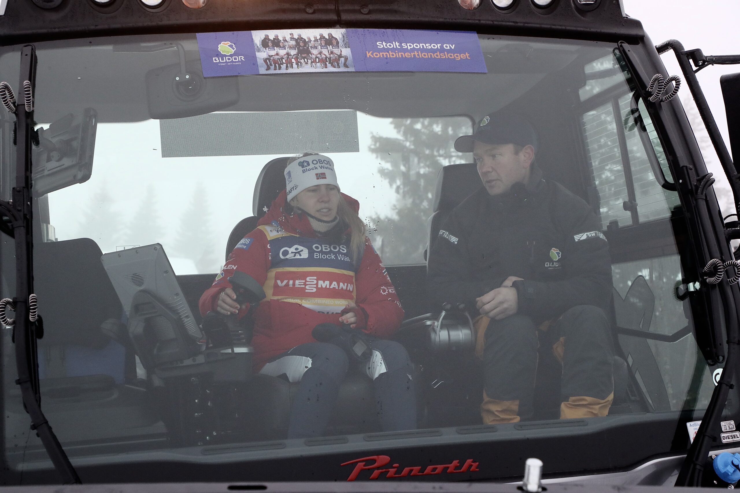Ida Marie Hagen prøvekjører løypemaskinen på Budor.