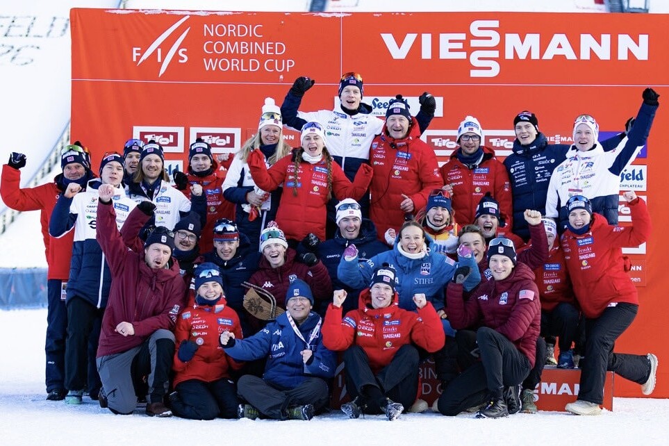 Kombinertlandslaget jubler etter sterke prestasjoner under World Cup-trippelen i Seefeld 30. jan – 1. feb 2026. Foto: @nocogirls